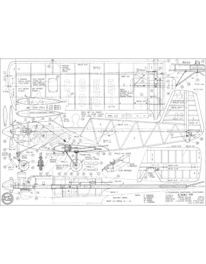 Výkres letounu a fotografie uveřejnily sice některé časopisy (Krylja rodiny 10/1962, Křídla vlasti 1963, Skrzydlata Polska 1963), ale uveřejněná dokumentace bohužel nestačí dnešním požadavkům na maketu podle platných pravidel. Na dokumentaci kategorie SUM nejsou kladeny tak vysoké nároky. Konstruktér popisovaného modelu v době, kdy model navrhoval, ještě žák, využil k svému zcela samostatnému návrhu pro kategorii SUM jako předlohu makety svých starších klubových kolegů. Vybral si dobře, v roce 1976 s modelem zvítězil na mistrovství ČSR žáků STTM. Škoda, že svůj úspěch neopakoval na mistrovství ČSSR, kde doplatil na potíže s motorem. Díky pečlivému zpracování modelu a vynikající pilotáži dokáže Josef Ulrych v soutěžích SUM porážet se svým CHAI-19 i mnohem starší a ostřílenější seniory. Dejme nyní slovo mladému konstruktérovi:
