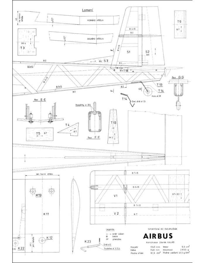 Nebyli jsme si jisti v otázce nastavení křídel, takže jsme prolistovali nejen řadu podkladů. Na všech bylo použito většího náběhu horního křídla a menšího u dolního. Z toho jsme vyšli při kreslení osvědčeného „bedničkového“ trupu.