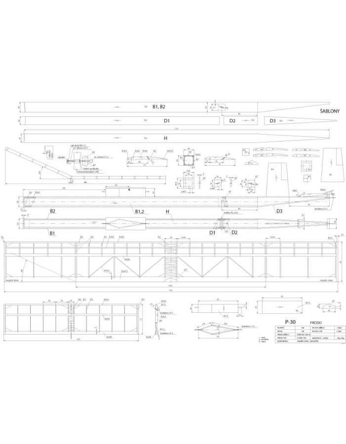 Frodo je představitelem jednodušších modelů této kategorie a je zkonstruován tak, aby jej bylo možné stavět v kroužku ve více kusech najednou. Proto jsou na plánku nakresleny i šablony, které je možné okopírovat, nalepit na karton nebo v případě stavby více kusů na překližku či jiný odolnější materiál. Pro usnadnění stavby mají křídlo a vodorovná ocasní plocha obdélníkový půdorys, takže mají všechna žebra shodná, a je možné je pro více modelů zhotovit najednou v bloku pásků balzy sevřených mezi šablonami – tzv. rašplovou interpolací. Blok sešroubujeme svorníky M2, jež provlékneme předem připravenými otvory v polotovarech žeber. Trup je také co nejjednodušší – sestavený ze čtyř prkének balzy.